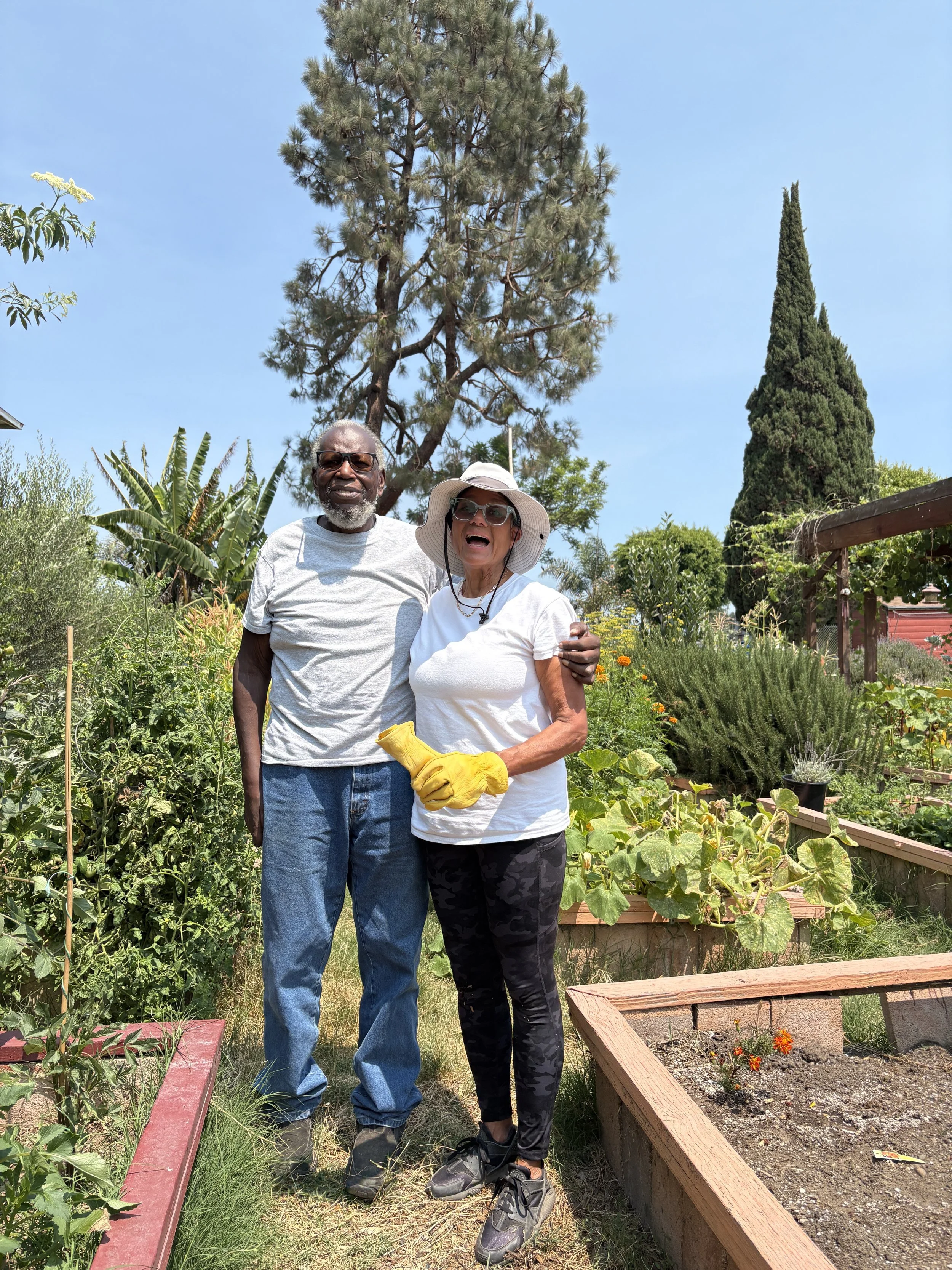 <- Dr. Sherridan Ross and Lenore French at the Compton Community Garden